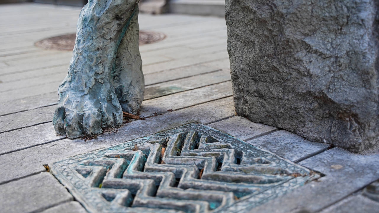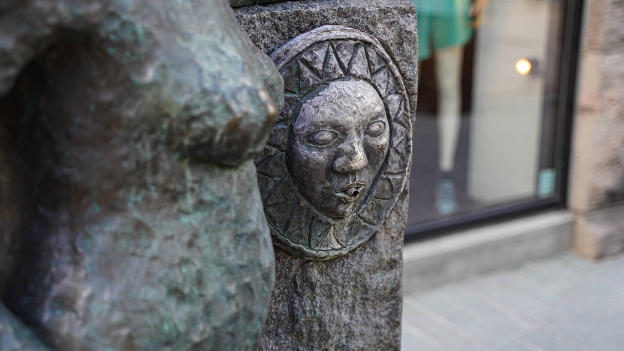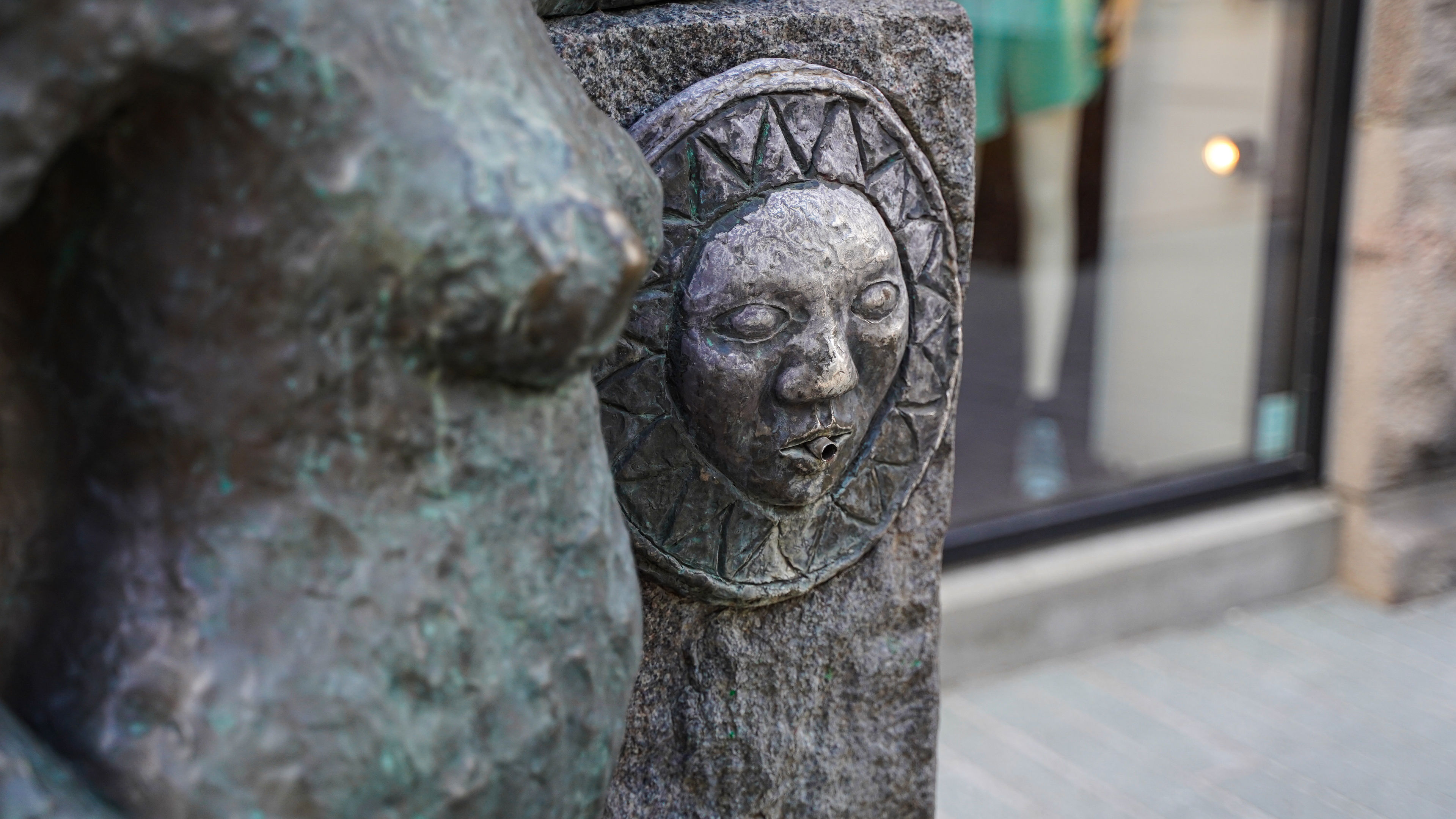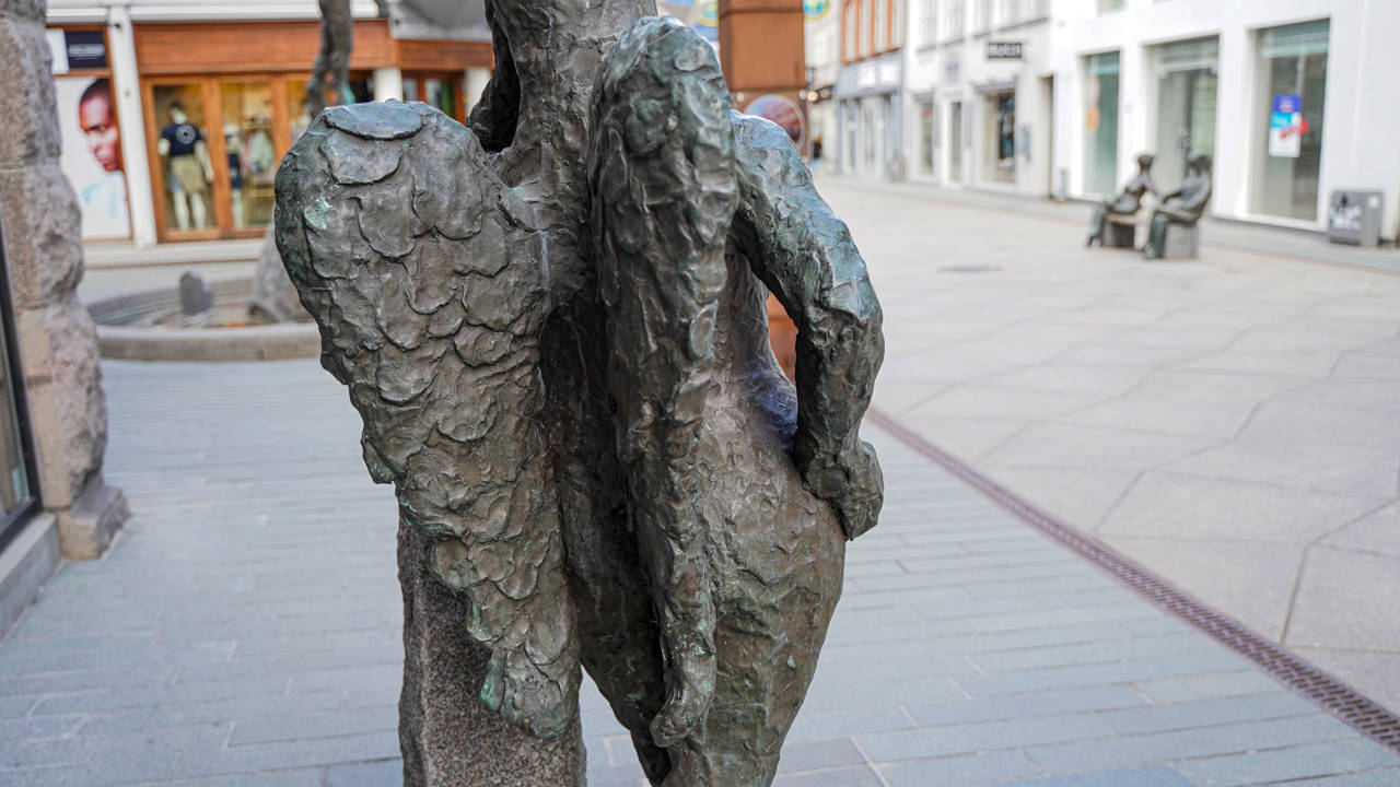 Englekatten ved drikkefontænen, er en del af treenigheden af skulpturer ved Orla Lehmannsgade og gågaden i Vejle.