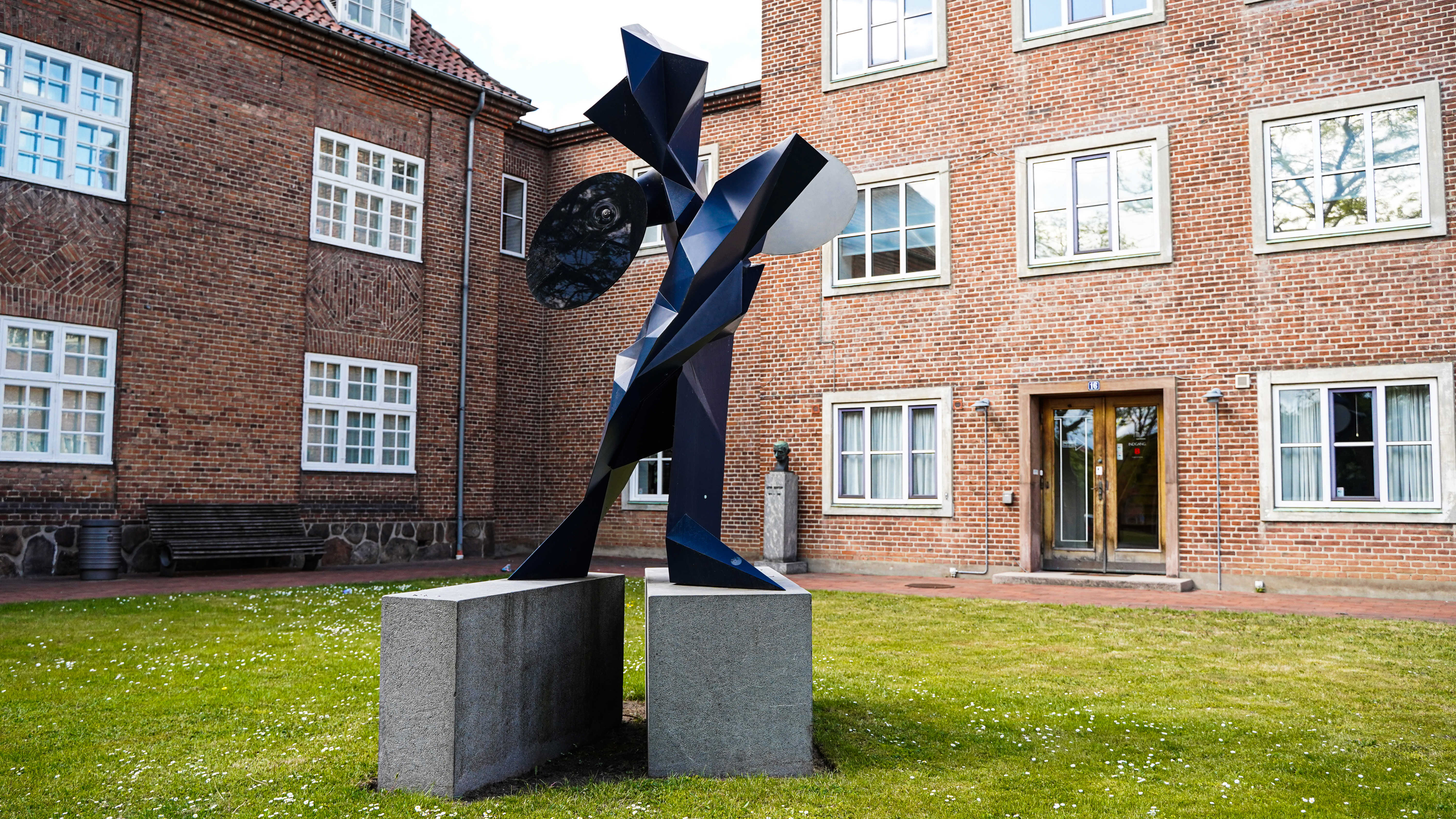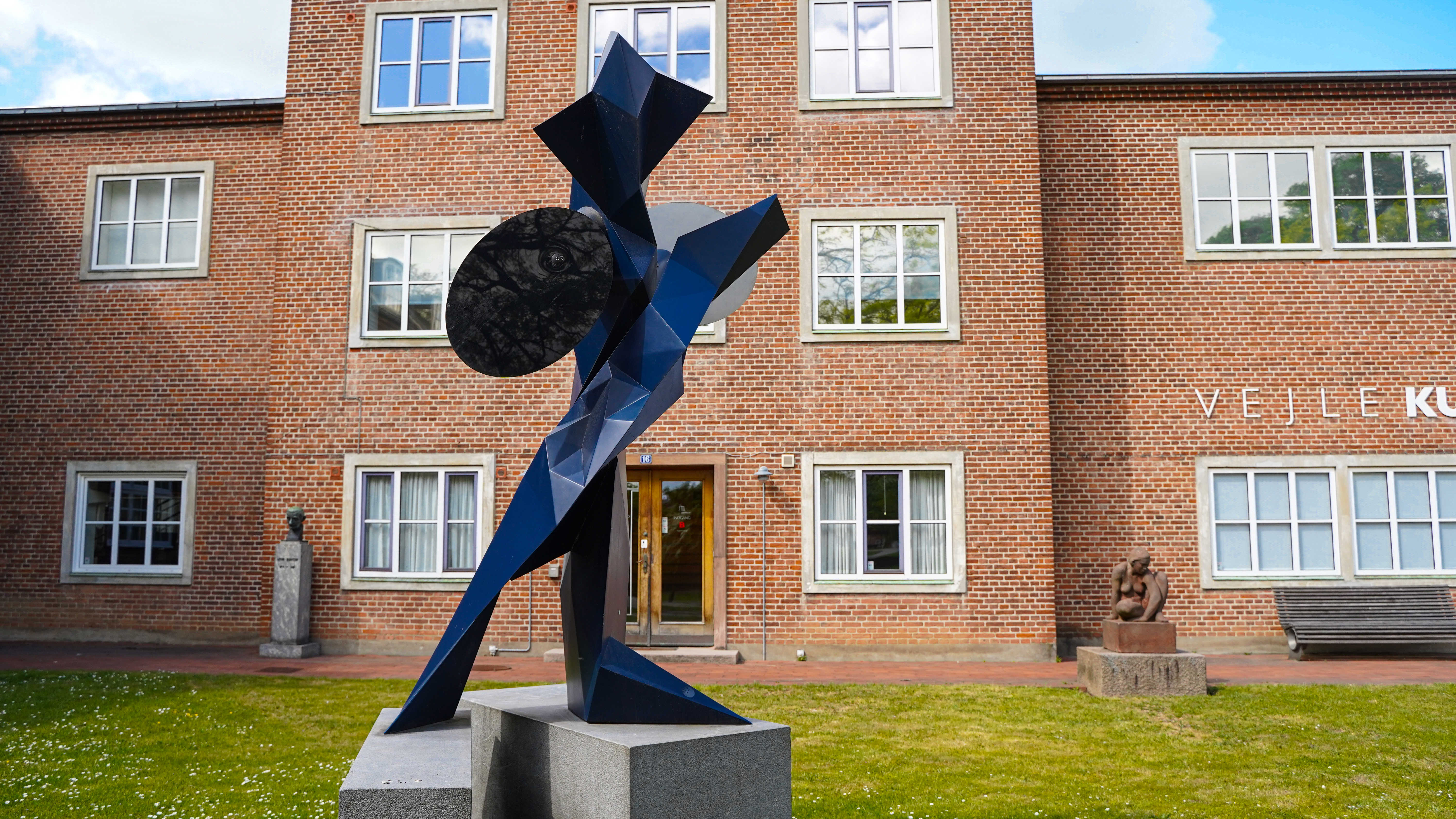 Morten Strædes skulptur, placeret ved Vejle Kunstmuseum, hedder Geist. Det betyder ånd eller spøgelse. Den store skulptur forestiller en skikkelse i bevægelse, med to ben placeret på hver af de to sokler. Skulpturen er hovedsageligt mørkeblå og abstrakt i formen.