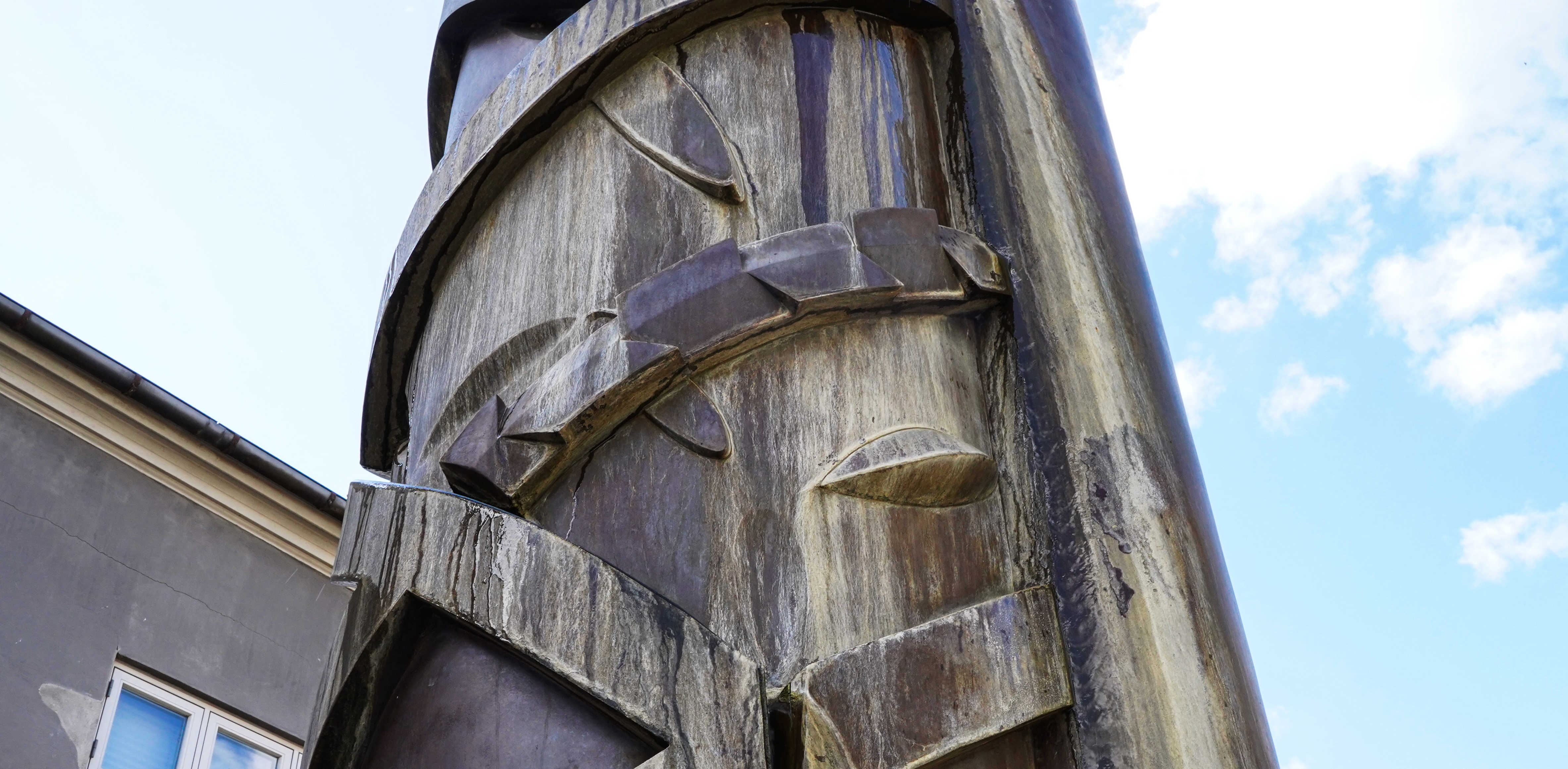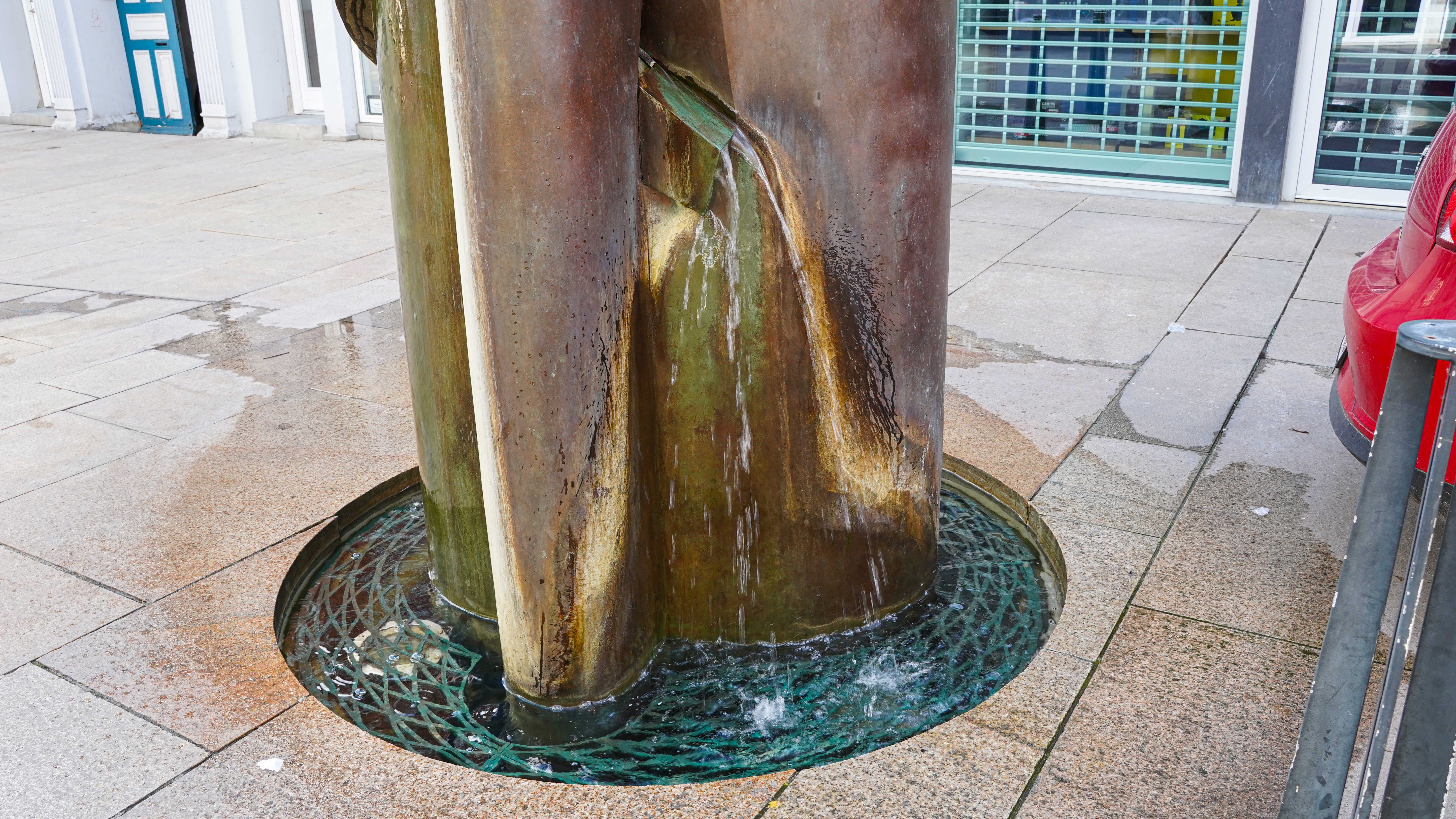 Vandsøjlen du står foran hedder Helix, hvilket også betyder "spiral” på engelsk. Det henviser til det snoede bånd om skulpturen, med de tre rislende vandløb ned langs siderne. Skulpturen er en hilsen til de brønde, der stod i alle danske byer i middelalderen – i Vejle stod bl.a. "Byens Kilde" på Rådhustorvet.