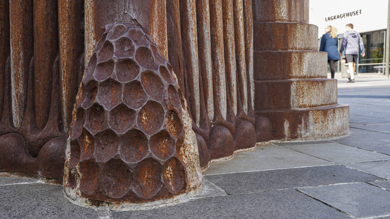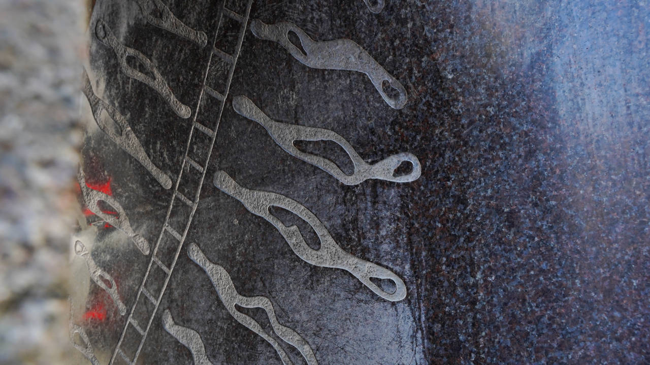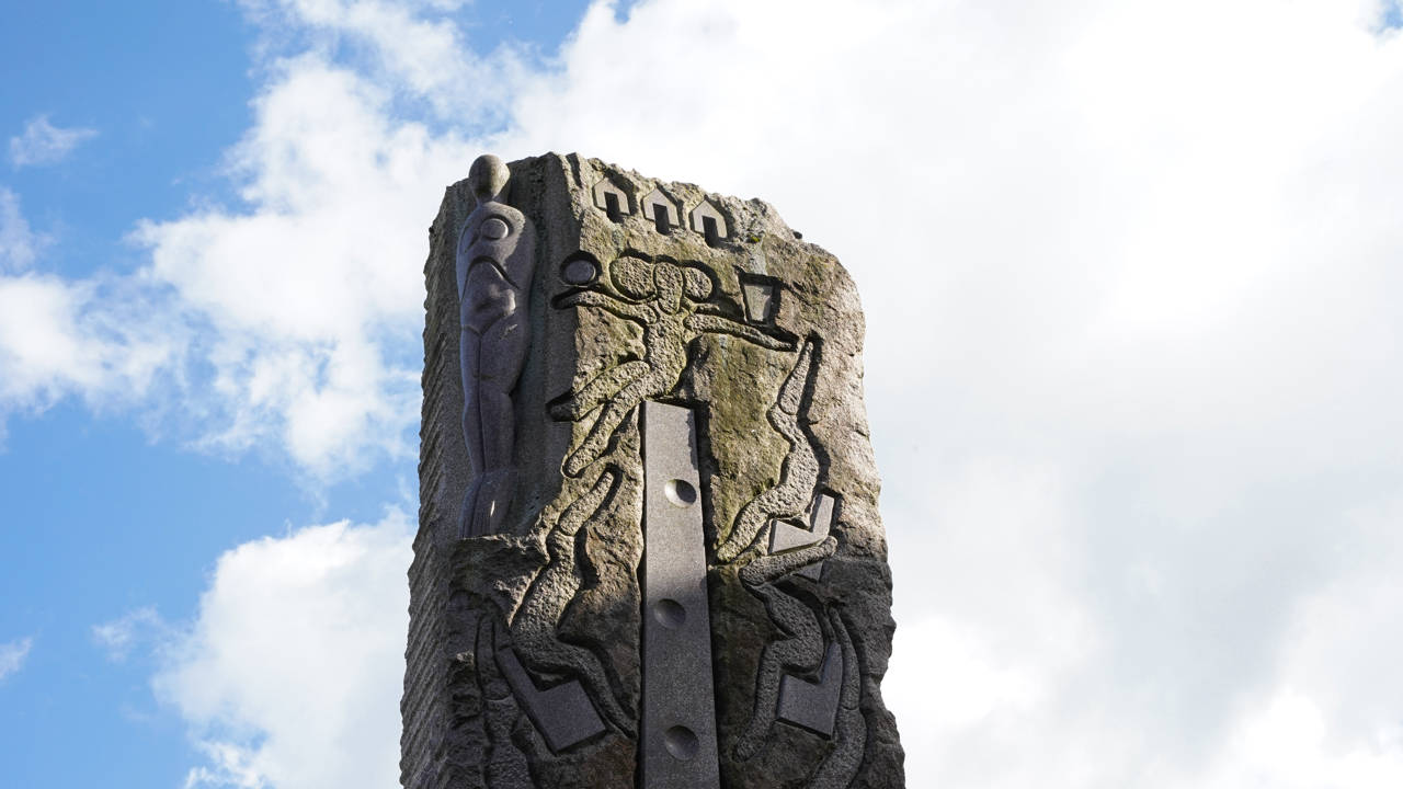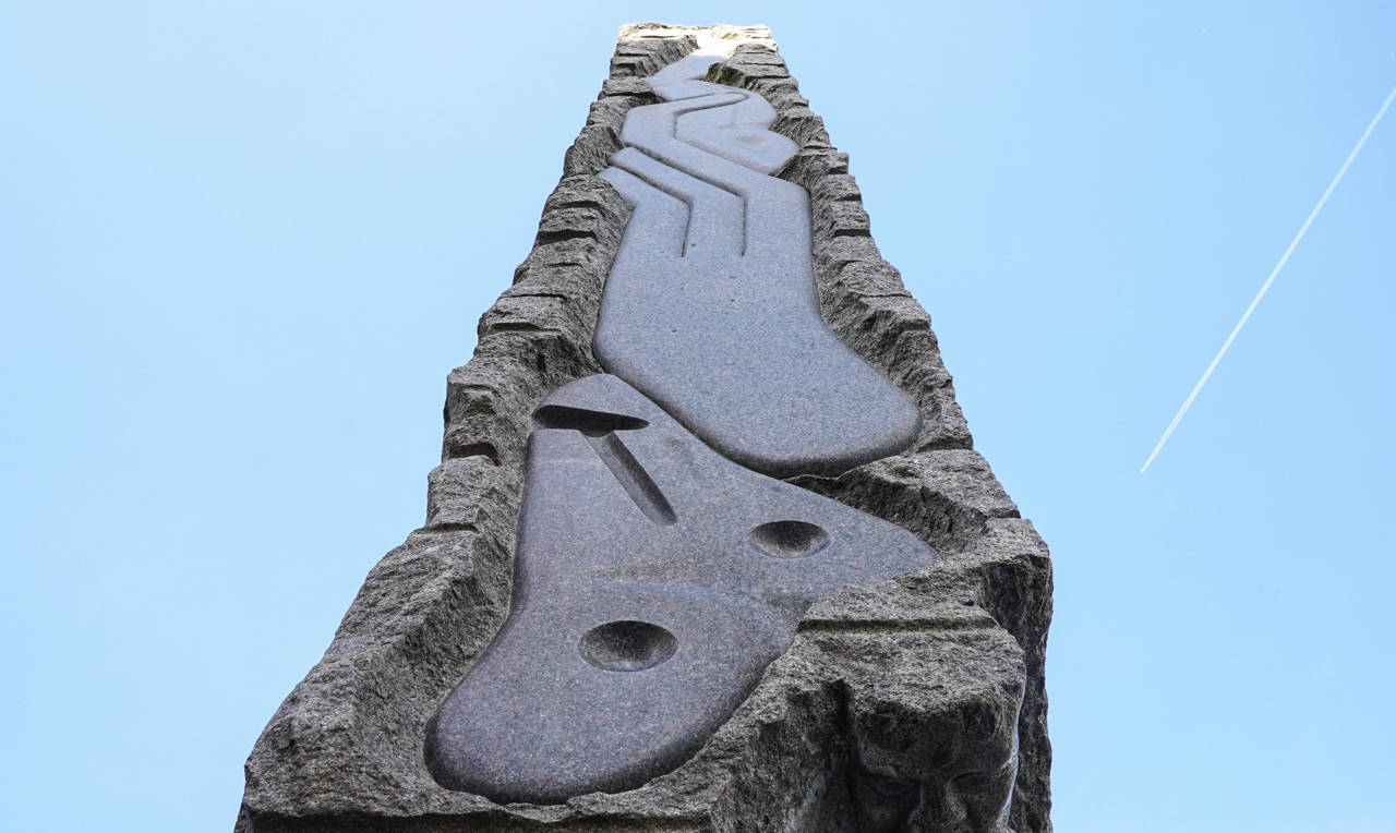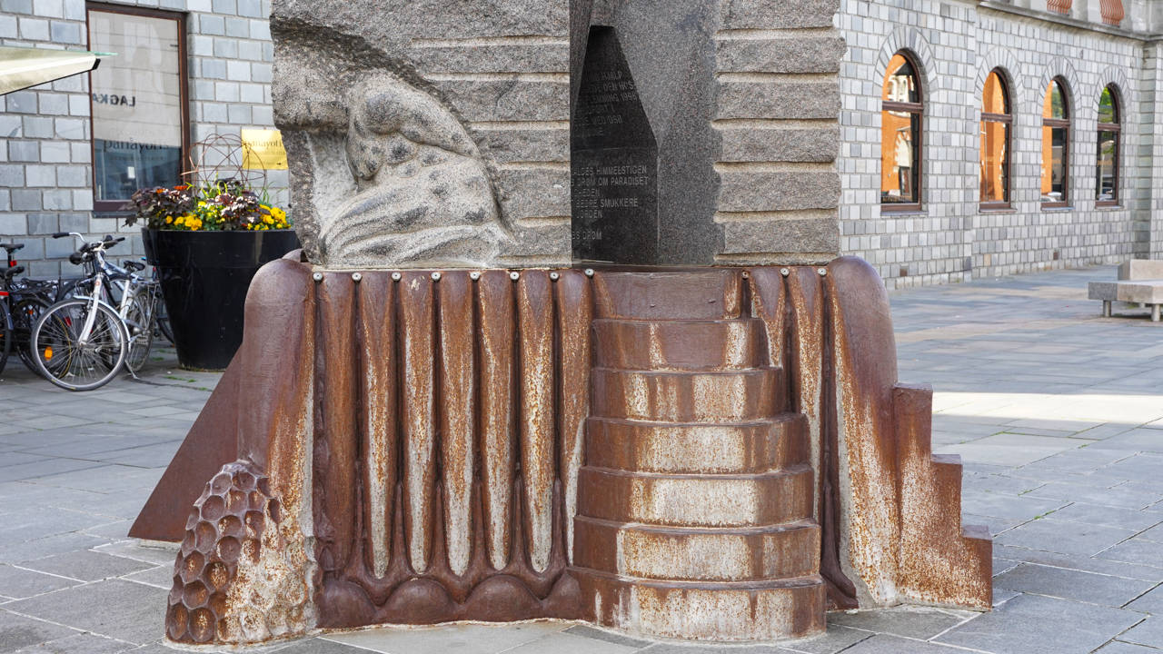 Selve stenens form henviser til oldtidens steler i Ægypten – der er også ægyptiske tegn eller hieroglyflignende tegn i og på skulpturen. En figur i et af de nederste hjørner er inspireret af skulptøren Michelangelos (1475 -1564) skulptur Atlas Slave. Andre steder er billedsproget mere moderne, og man kan finde bl.a. en kuffert, som henvisning til rejser med tog.