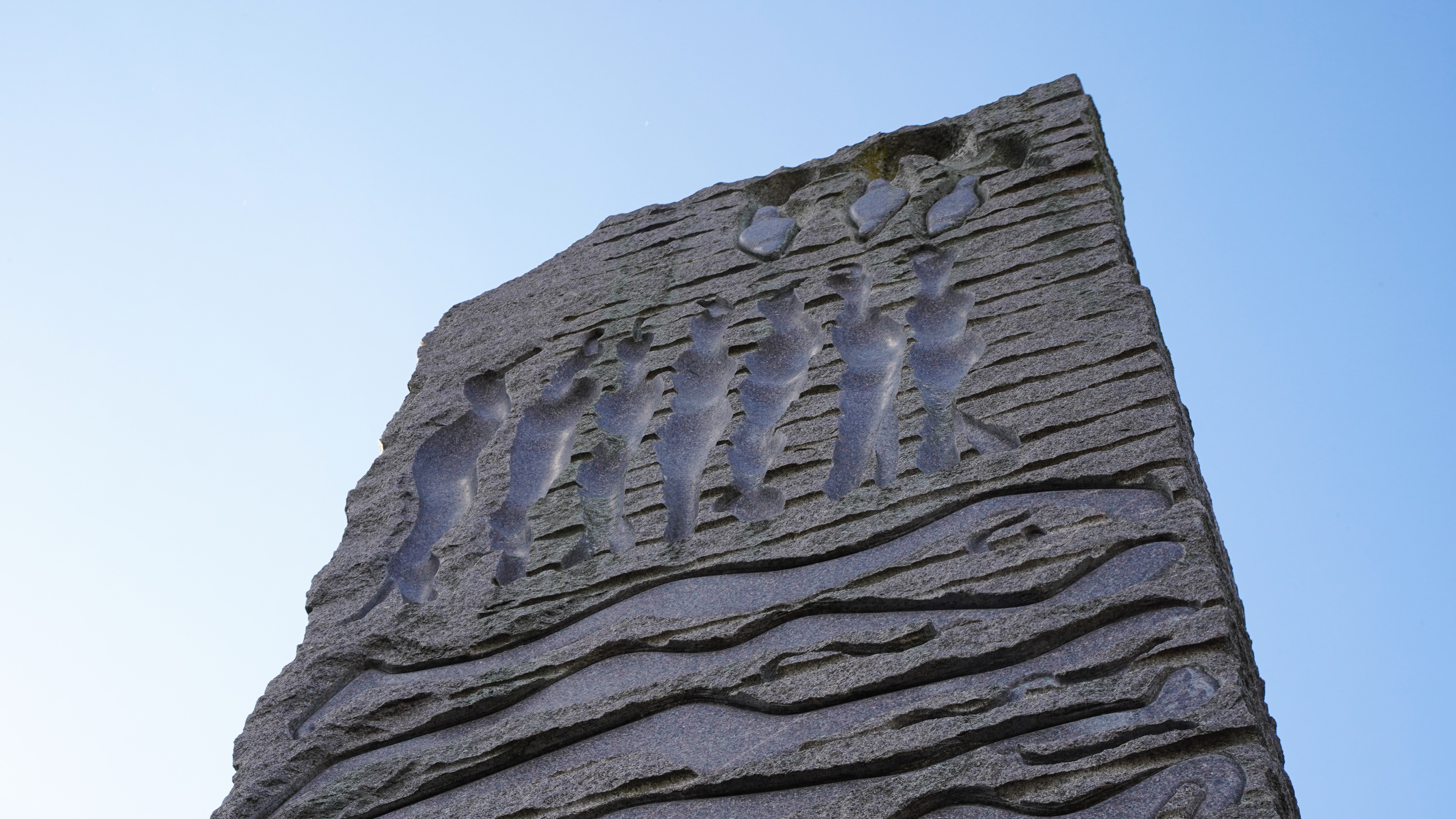 Selve stenens form henviser til oldtidens steler i Ægypten – der er også ægyptiske tegn eller hieroglyflignende tegn i og på skulpturen. En figur i et af de nederste hjørner er inspireret af skulptøren Michelangelos (1475 -1564) skulptur Atlas Slave. Andre steder er billedsproget mere moderne, og man kan finde bl.a. en kuffert, som henvisning til rejser med tog.