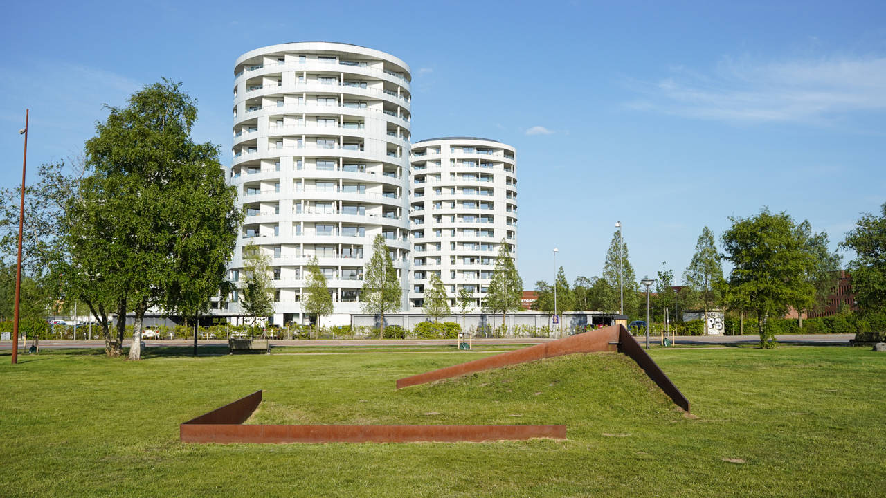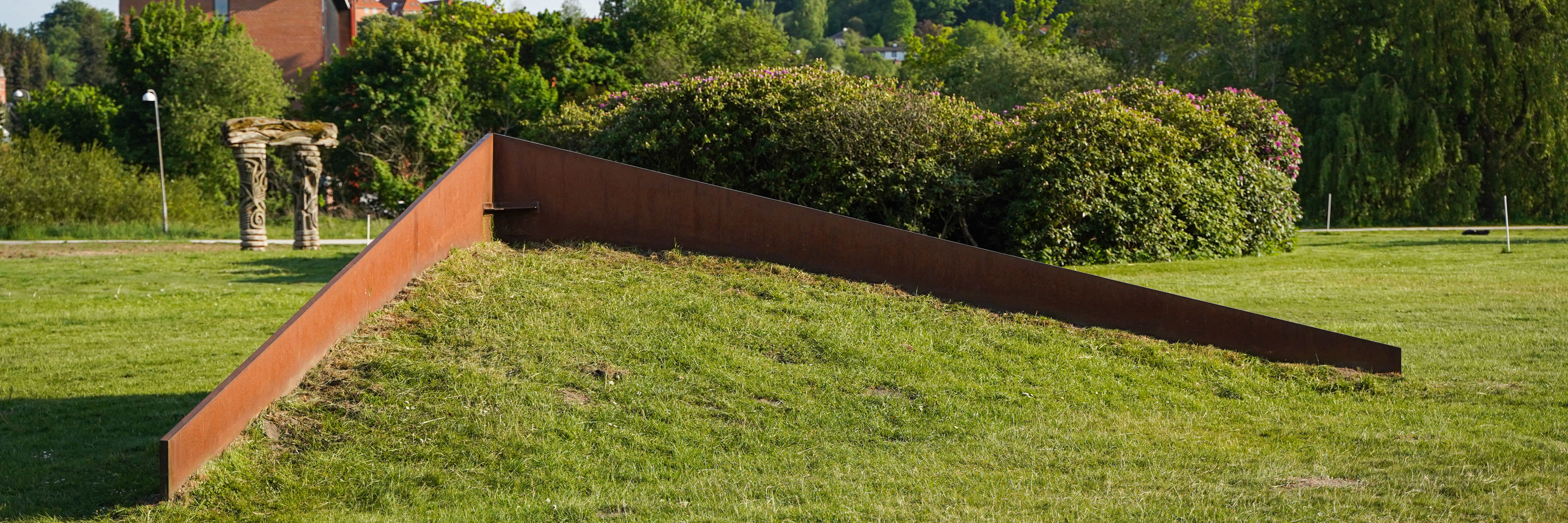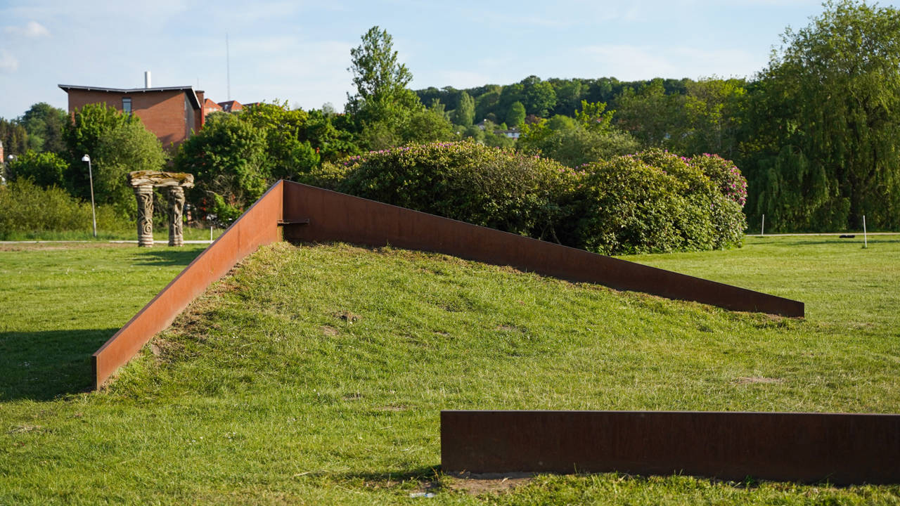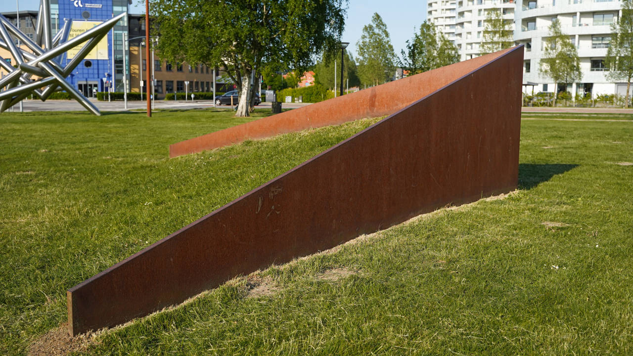 Negative Shift blev skabt i 1987 af den amerikanske kunstner James Reineking, som en kunst-happening i forbindelse med FestiVejle. Siden 1970’erne har Reineking fokuseret på stålskulpturer og oftest med rette vinkler som udgangspunkt. Disse beskæres, bøjes og arrangeres på ny i denne skulptur. De todimensionale linjer omdannes til tredimensionale former. Dermed bliver Negative Shift ved med at bevæge sig fra negativ form til positiv form, der ændrer sig fra firkant til trekant, i takt med at man bevæger sig rundt om skulpturen. Prøv at gå en tur rundt om skulpturen, og se den ændre form i takt med perspektivet.
