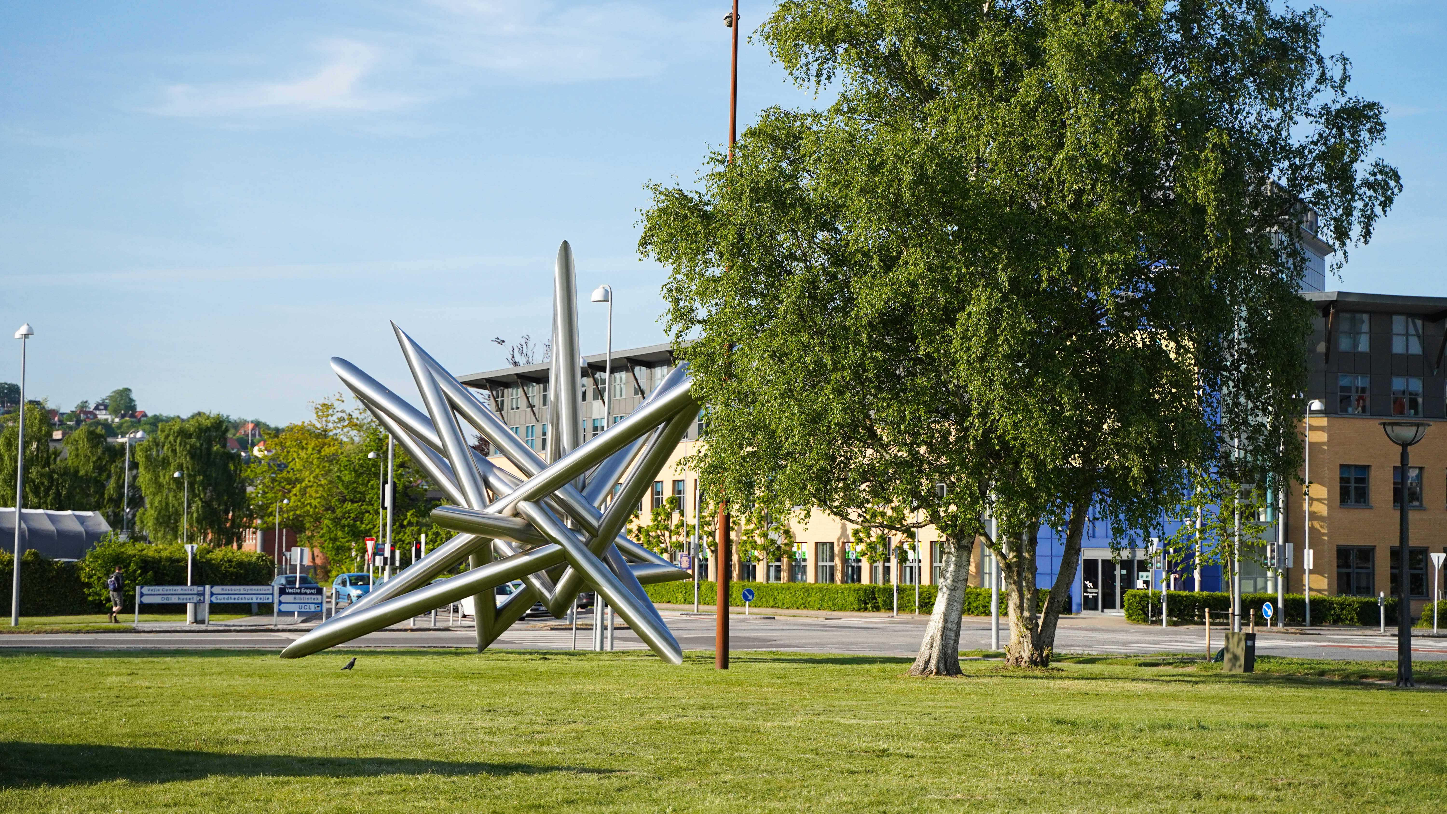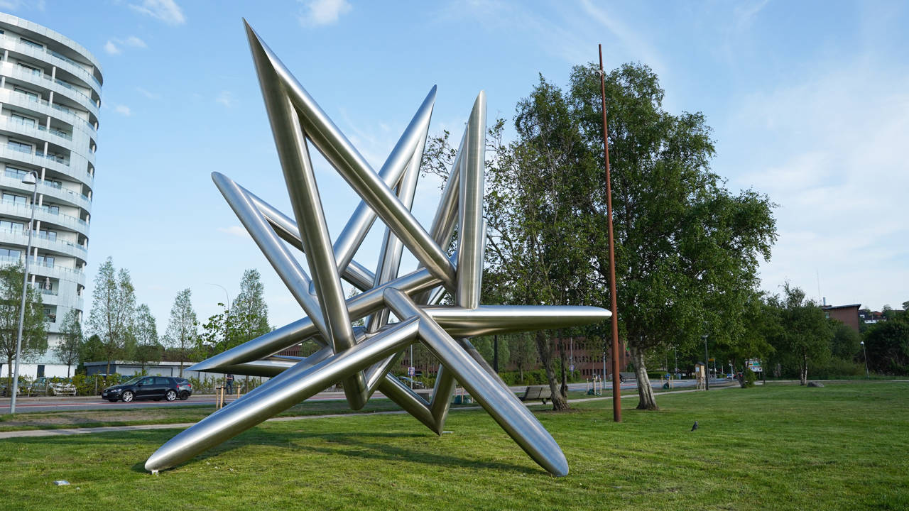 Den store stjerne her ved biblioteket, er en del af Kristian Hornsleths verdensomspændende kunstprojekt, "Deep Storage Project". Der er to stjerner i alt, hvoraf den ene står her foran dig, og den anden befinder sig på bunden af Stillehavet.