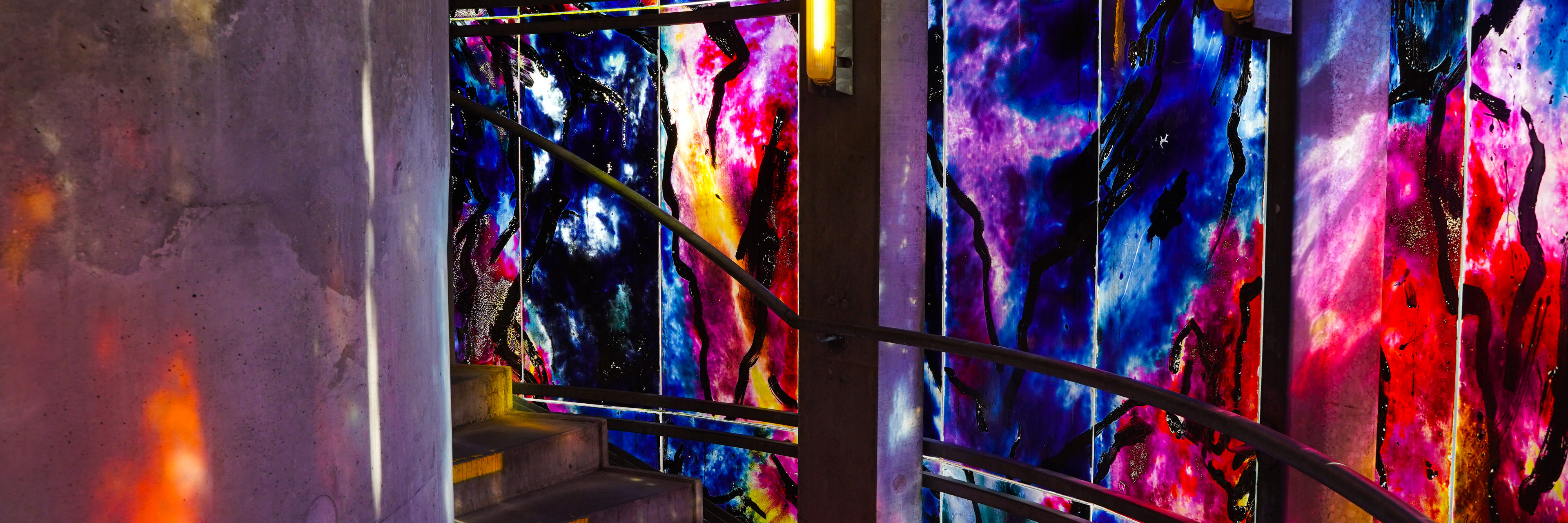 Vejles kendte parkeringshus, Tróndur, har skabt sig en fremtrædende plads i bybilledet. Det primære trappetårn ud mod Volmers Plads er udført som et stort glasmaleri af den anerkendte færøske glaskunstner Tróndur Patursson. Om aftenen fremhæves trappetårnets mange forskellige smukke farver, af lyset indefra.