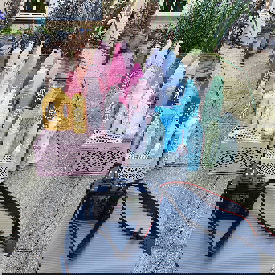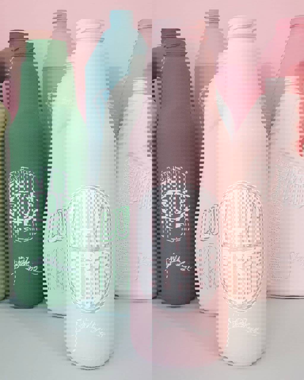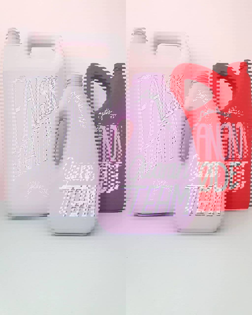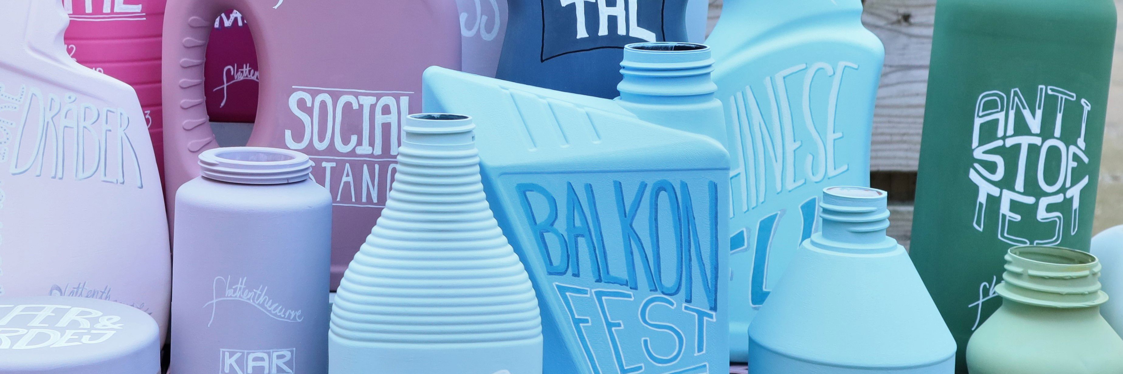 Coronakrisen er en tid, hvor alt er nyt, og vi famler os lidt frem. Der bliver opfundet nye ord og begreber, vi aldrig har hørt om før. Kunstværket viser disse ord som labels på den fiktive rengøringsproducent #FLATTENTHECURVE’s mange produkter. Ord og begreber bliver malet på emballagen og symboliserer en her-og-nu-løsning.