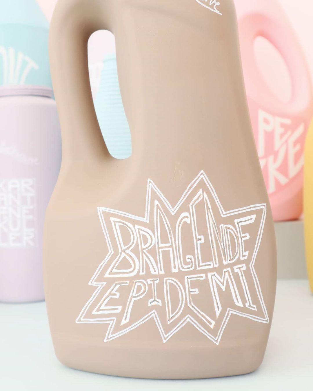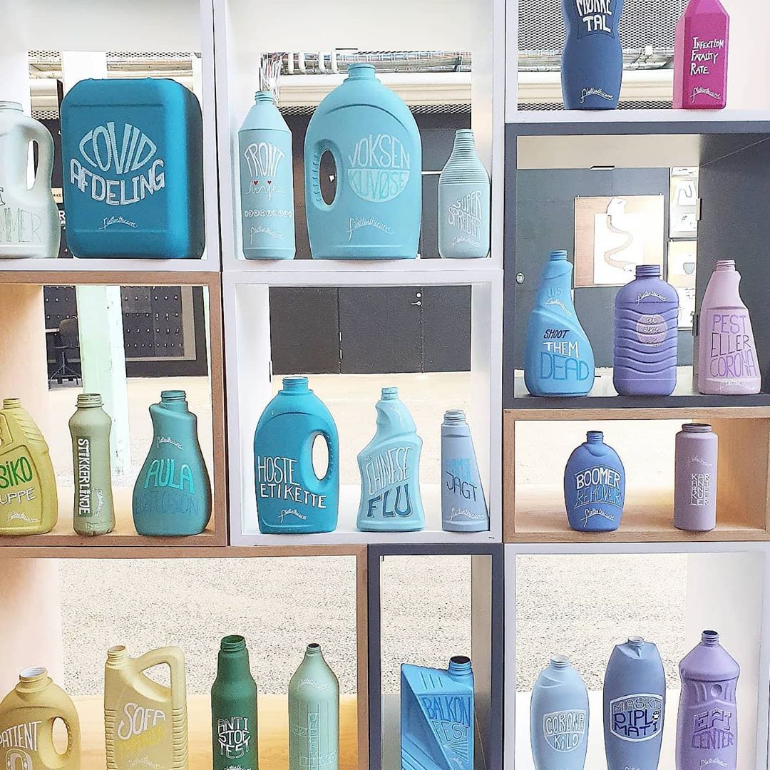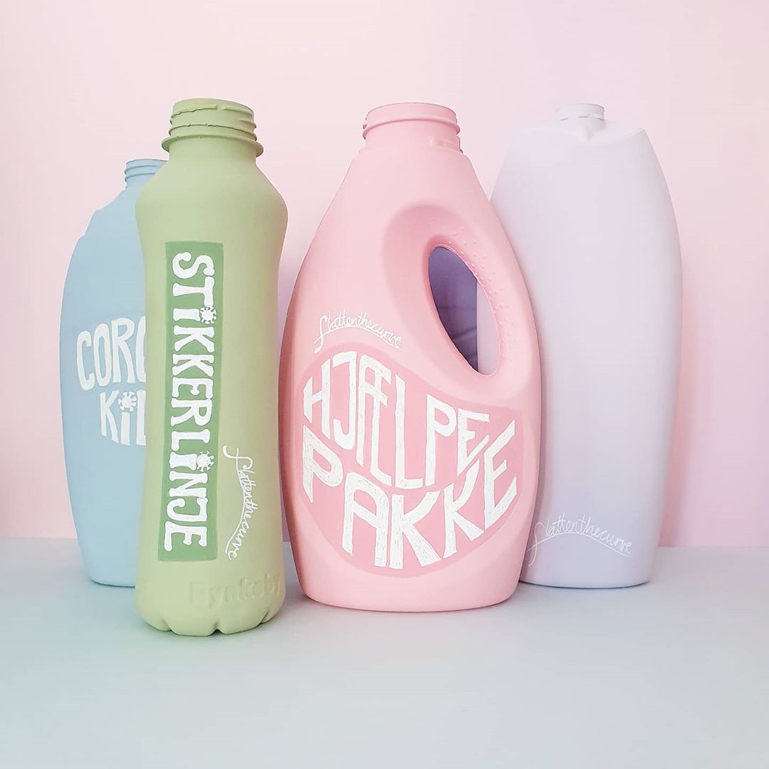 “Jeg fik helt tilfældigt øje på #flattenthecurve på Instagram, og jeg synes, projektet er interessant i den hverdag, vi lever i lige nu,” fortæller Pernille Rom Bruun og fortsætter: “Projektet indfanger historien lige nu, i form af de nye ord og begreber som vi bruger til at forstå coronakrisen. Det er også en registrering af folks forbrug af rengøringsmidler derhjemme. De fortællinger indfanger Junette, som er kroniker, og derfor vokser projektet i takt med hendes karantæne.”