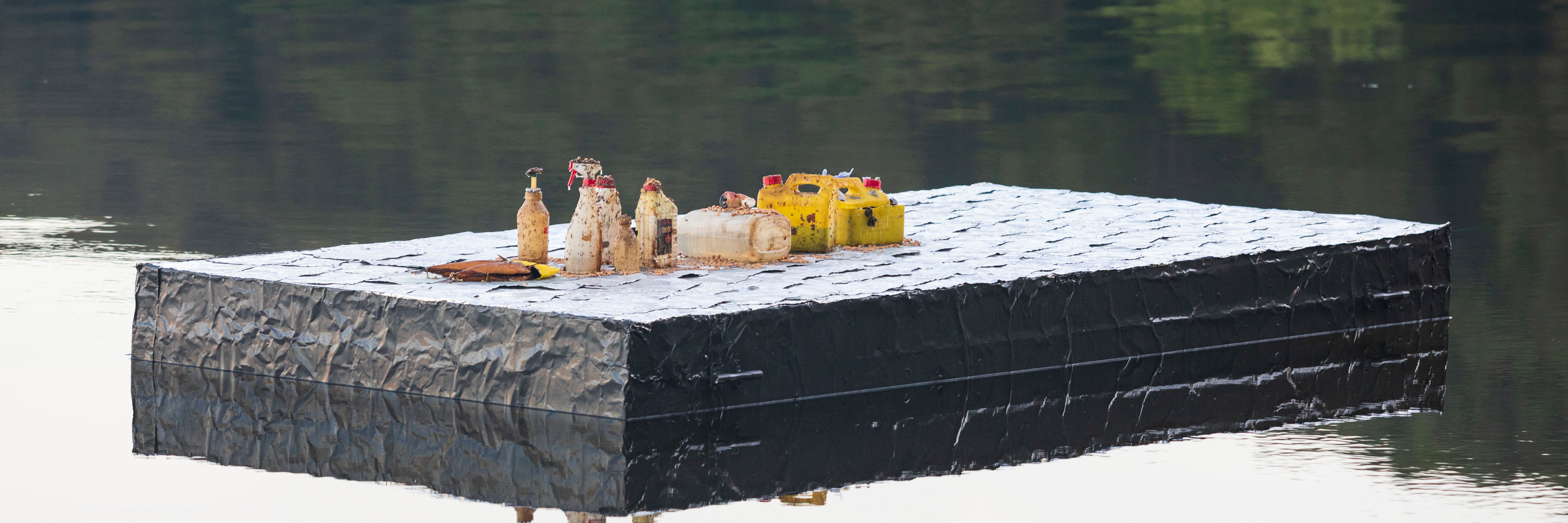 Frederik Worm’s The Scapegoat er et hybridværk mellem model/skulptur/arkitektur. The Scapegoat er en flydende enklave, eller hvad han definerer som ’extra-territorielt’.