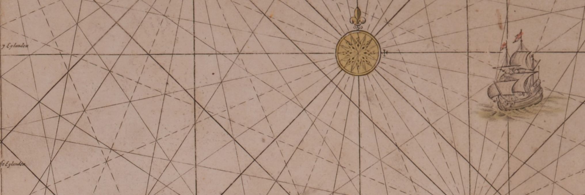 Her var særligt kompasset vigtigt, da man derigennem kunne orientere sig i forhold til den magnetiske nord og dermed sikre, at man rejste i den rigtige retning. Doncker producerede sit søatlas, så det passede med et kompas, hvilket de 16 jævnt fordelte bundter af streger omkring et centralt bundt demonstrerer: Hvis man lægger et kompas på kortet i den korrekte retning, kan man orientere sig i forhold til ens aktuelle placering og fremtidige rute videre ud i verden.