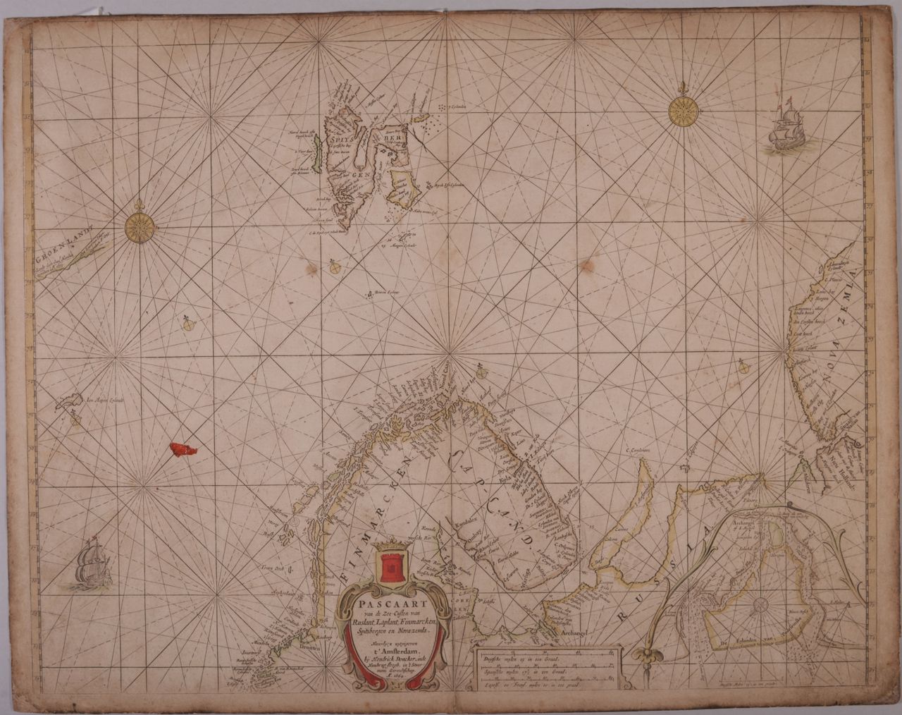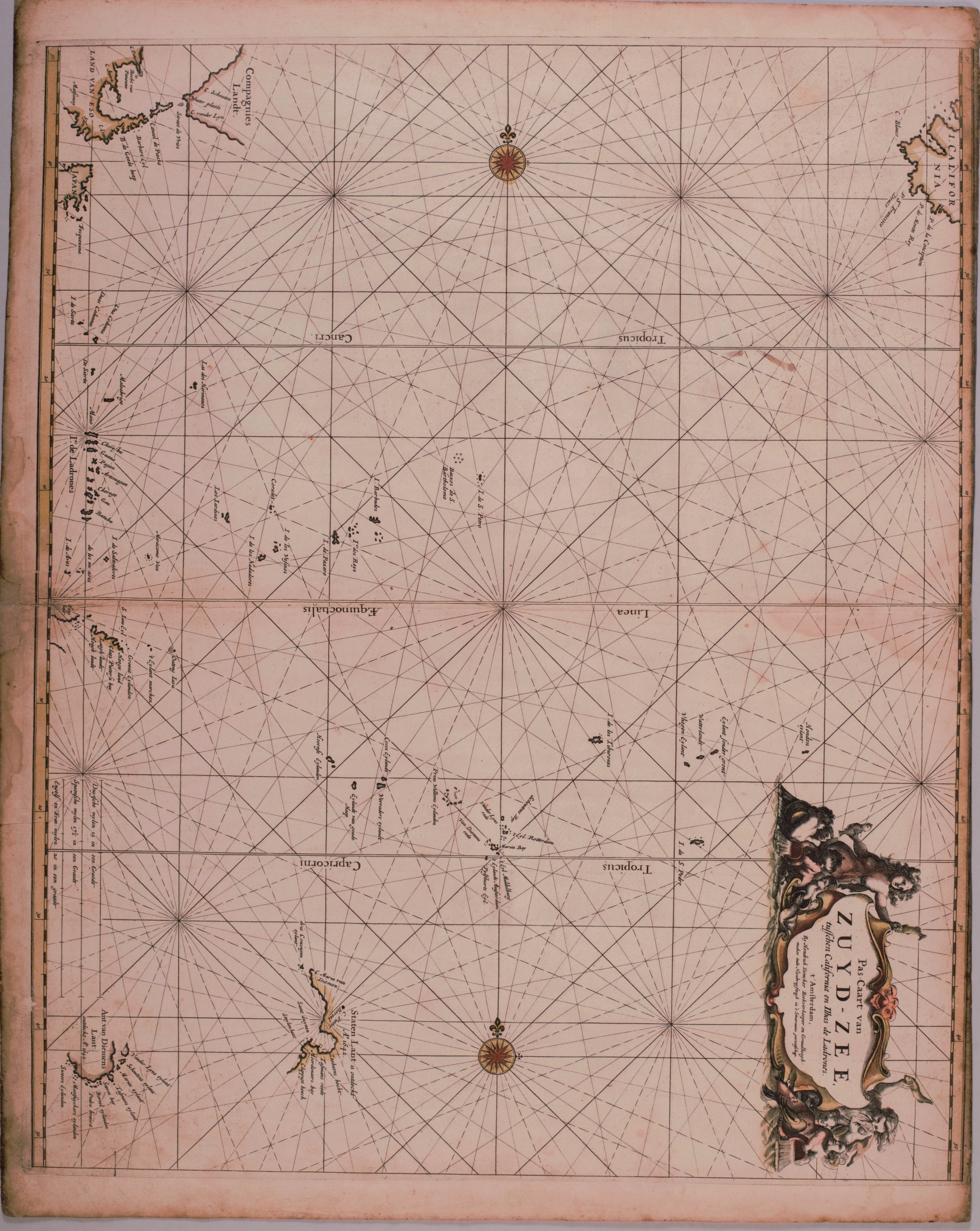 Her var særligt kompasset vigtigt, da man derigennem kunne orientere sig i forhold til den magnetiske nord og dermed sikre, at man rejste i den rigtige retning. Doncker producerede sit søatlas, så det passede med et kompas, hvilket de 16 jævnt fordelte bundter af streger omkring et centralt bundt demonstrerer: Hvis man lægger et kompas på kortet i den korrekte retning, kan man orientere sig i forhold til ens aktuelle placering og fremtidige rute videre ud i verden.