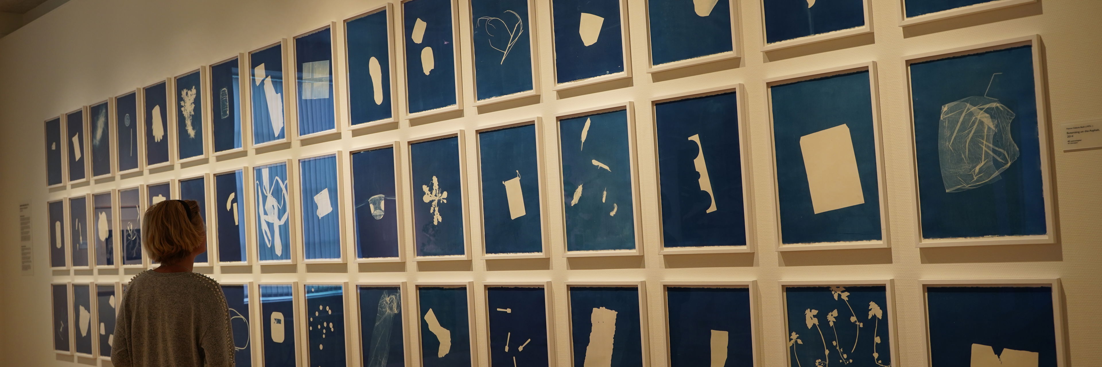 Svævende mænd i mystiske interiører, 48 blå billeder af ting fundet på gaden, fotos af en smeltende gletsjer i bevægelse og bybilleder, der synes bygget op af tegn og ord.