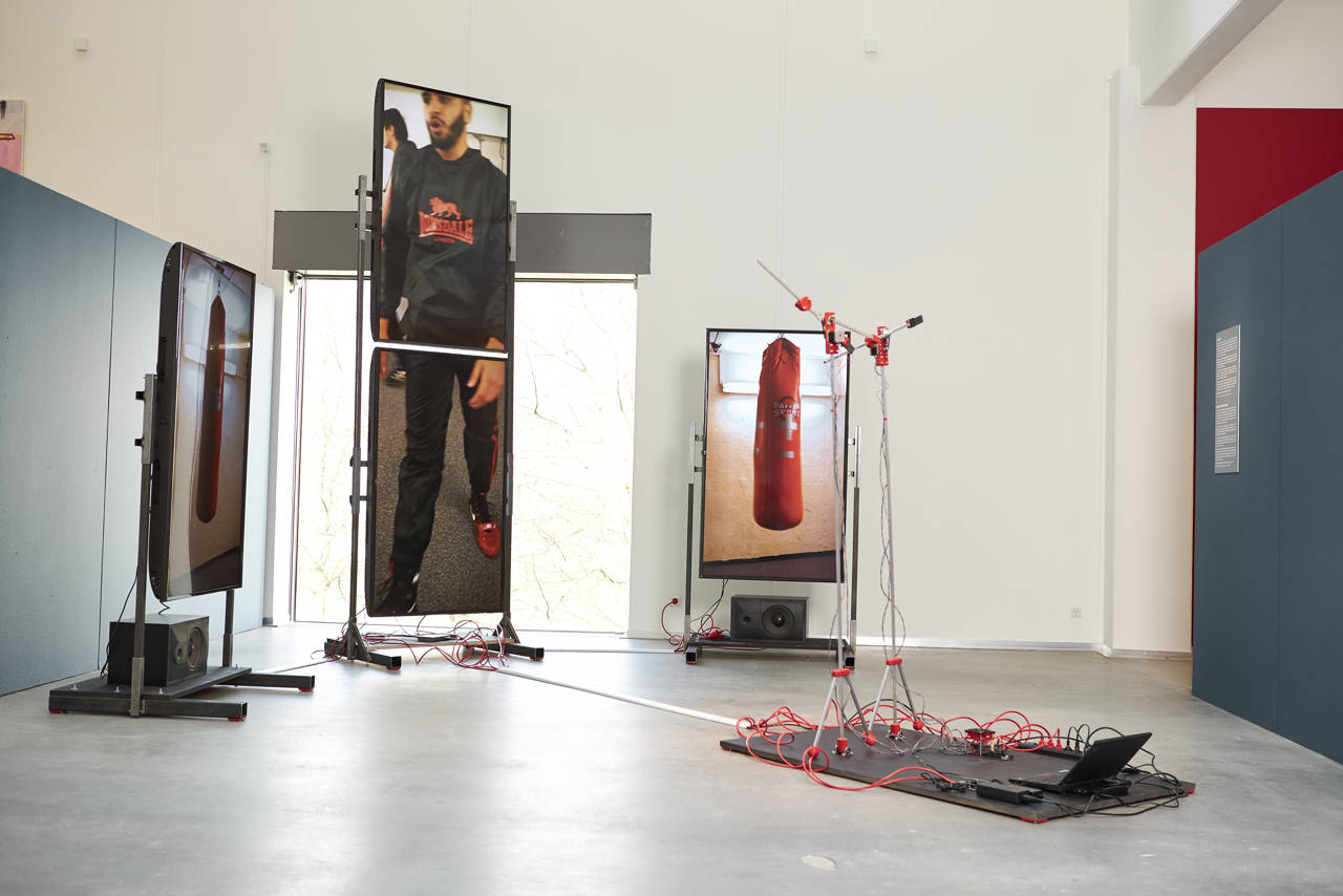 I Bokseforeningen BK Nørremarken har Alex Mørch indsamlet video- lyd- og sensordata fra boksernes kamptræning. I værket Kæmpe kan du se menneske og maskine i forening. Se bokseren på skærm, mens robotten i rummet prøver at bevæge sig synkront.