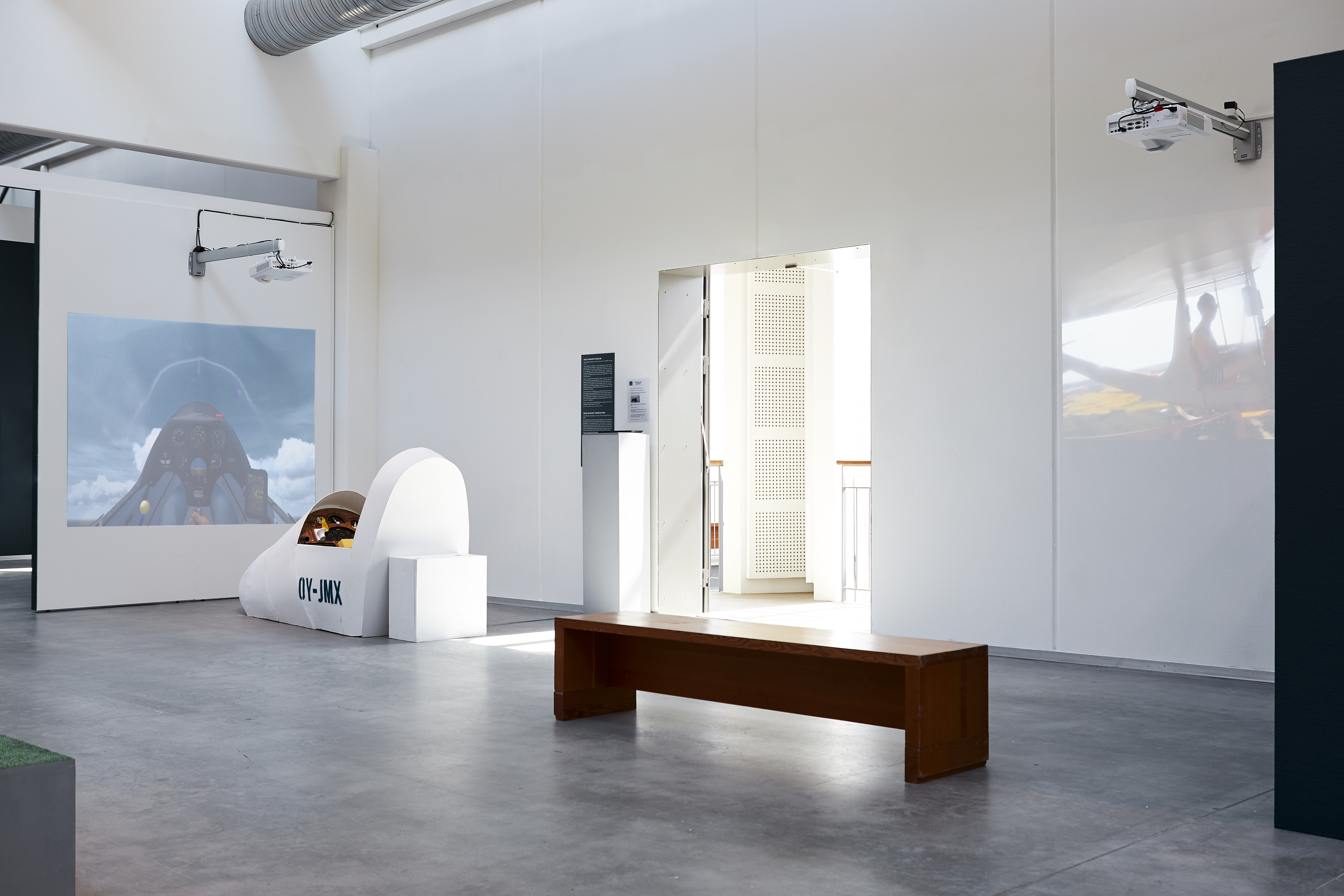 Kunstnerduoen Jens og Morten har i samarbejde med Vejle Svæveflyklub skabt et interimistisk svæveflyver cockpit. Oppe i udstillingen kan man lette virtuelt fra klubbens egen landingsbane og tage turen over Vejle.