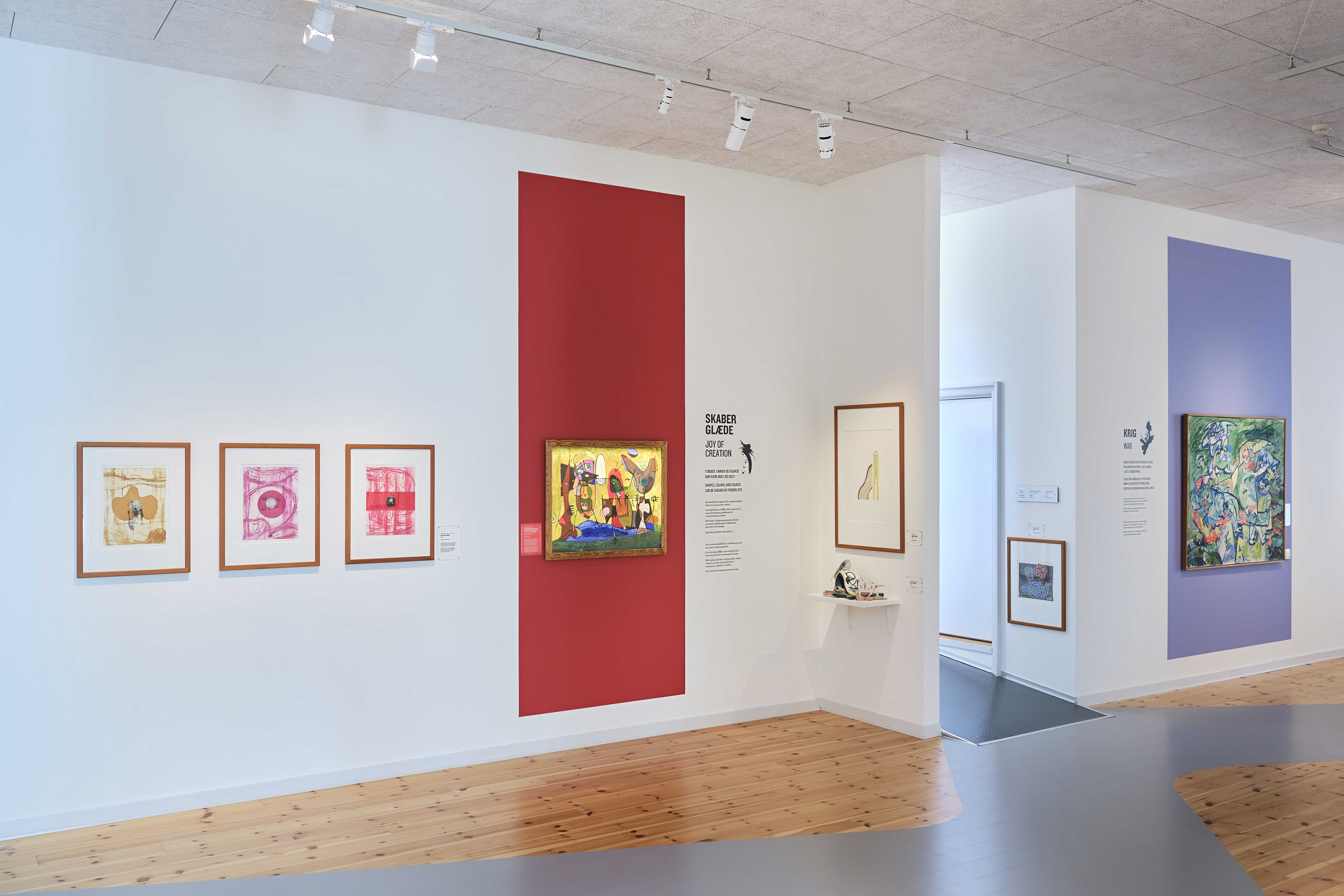 Abstrakt kunst kalder på mere, end det man umiddelbart kan se med det blotte øje. I udstillingen 'Mere end øjet ser' møder du både ny og ældre abstrakt kunst, set gennem skaberglæde, naturens kræfter, krigens voldsomme udtryk og kroppes udstrakte lemmer.